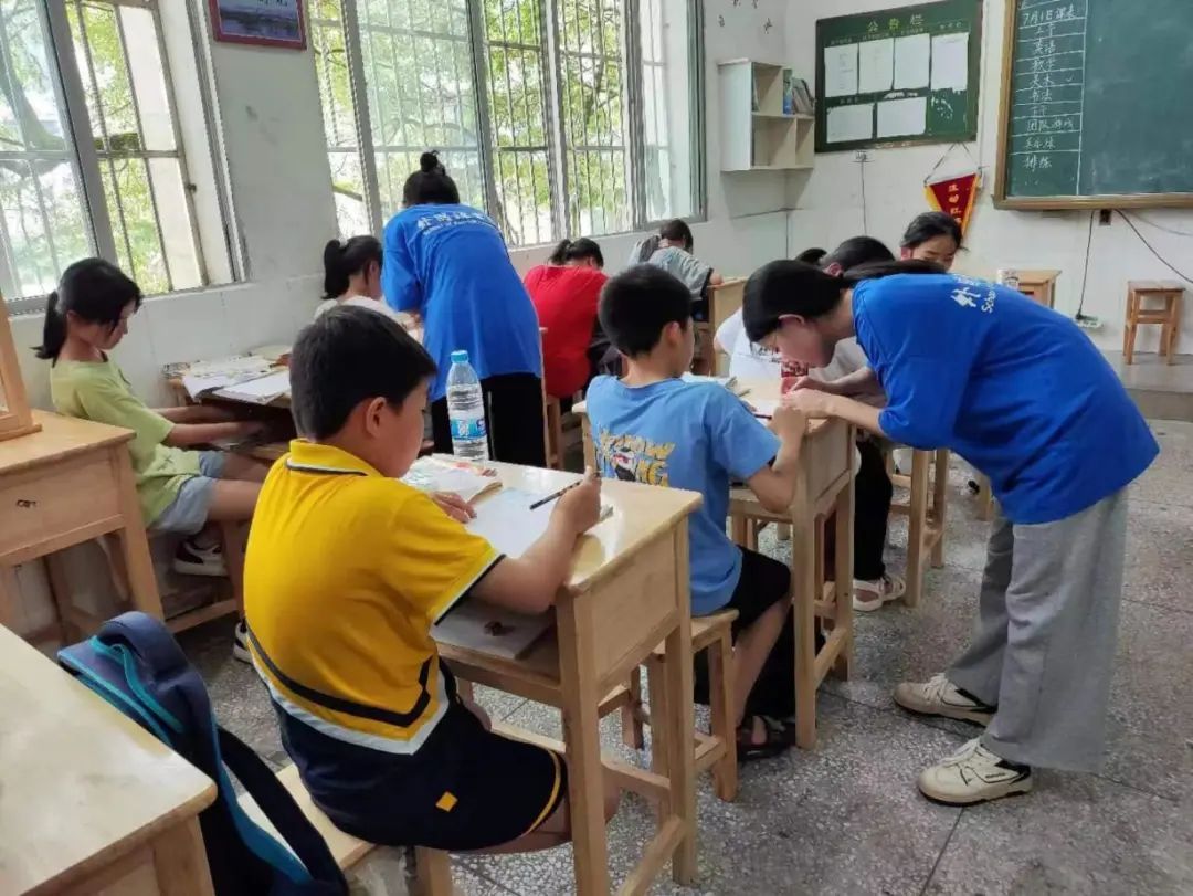 “老师,有‘河’、‘跑’”“还有……”小朋友们争先恐后,课堂氛围十分活跃。2023年7月1日,在江西省萍乡市上栗县流江学校,萍乡学院红色安源志愿服务团正式开始了为期一周的暑期三下乡义务支教活动。志愿团成员们将优秀传统文化带入课堂,用一撇一捺的汉字书写、一字一句的诗词朗诵滋润农村留守儿童的精神世界。“优秀传统文化是中华民族的精神命脉,是涵养社会主义核心价值观的重要源泉“。志愿团成员们将书法和诗词带入暑期课堂,不仅在一撇一捺中传播了中华优秀传统文化,更在一字一句间滋育了少年志气。他们以自身为桥梁,让优秀传统文化在农村留守儿童的心间生根发芽,为文化传承注入新时代青春力量。