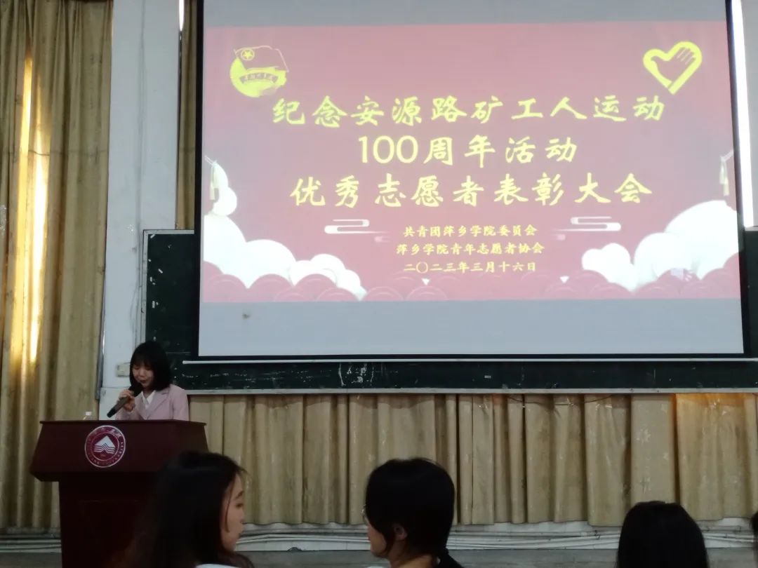 为了深切缅怀革命先烈的崇高爱国情怀和伟大革命精神,回顾党团结带领安源路矿工人开展革命运动的光辉历史和宝贵经验,弘扬光荣传统、赓续红色血脉、汲取奋进力量,3月16日,我校举办了纪念安源路矿工人运动100周年活动的优秀志愿者表彰大会。