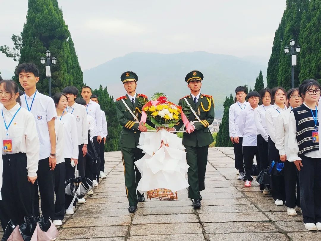 国旗班成员伴着《献花曲》的节奏昂首挺胸地迈着正步向陵园敬献花篮,全体成员向烈士低头默哀一分钟。在离开烈士陵园前,校团委全体成员在学生副书记罗佩君的带领下围绕烈士陵园瞻仰一周并三鞠躬,近距离感受红色文化、红色精神并给予最深沉的敬意。活动一开始,断断续续的小雨冲刷了干净的地面,但这无法洗刷烈士赋予精神痕迹,无法冲淡对烈士的敬仰。