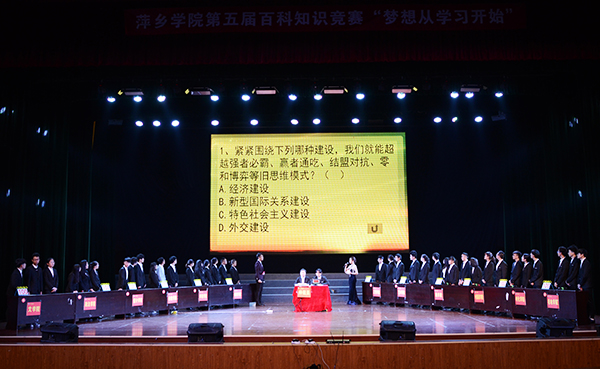 为了活跃学习氛围,引导大学生勤于学习、敏于思考,开阔大家的眼界,拓展知识面。4月25日晚,由校团委和高教研究与质量评估中心主办、校学生会和校社联承办的第五届“梦想从学习开始”百科知识竞赛决赛在音乐厅举行。