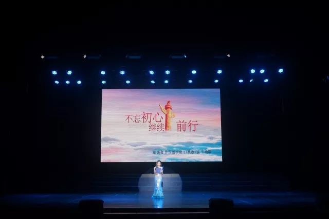 在一群粉蓝彩衣的拥簇下,商学院李娜奉上《中国梦·我的梦》,我们有一个共同的梦——实现中华民族的伟大复兴。正是这个共同的梦,鼓励我们克服人生路上的种种困难。外国语学院王晗聪带来《不忘初心·继续前行》,永葆赤子之心,走得再远、走向再光辉的未来,也不能忘记走过的过去,不能忘记为什么出发。