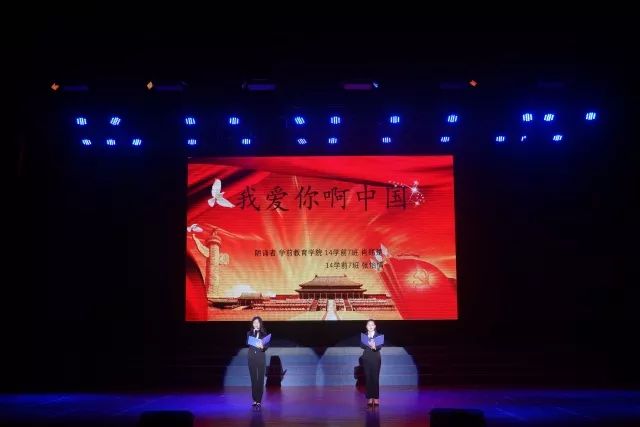 由艺术学院司梦雅、仲金春带来的《致奋斗》,激励我们,困难是激发前进的力量,挫折是磨练奋斗的勇气,而失败是指明成功的方向。学前学院肖翘楚、张怡情带来的《我们爱你啊·中国》,用发自肺腑的心声,道出对祖国母亲的热爱。