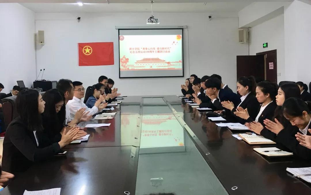 继校团委举行“青春心向党 建功新时代”纪念五四运动100周年主题团日活动之后,各学院团总支纷纷组织“青春心向党 建功新时代”纪念五四运动100周年主题团日活动,认真学习习近平总书记在纪念五四运动100周年大会上的重要讲话精神,号召广大团员青年大力弘扬爱国主义精神,勇于担当实干,为建设富强民主文明和谐美丽的社会主义现代化强国贡献青春与智慧。