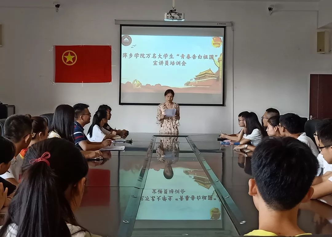 培训会对宣讲内容提出了要求,一是向党表白,永远跟党走;二是向中国特色社会主义诚挚表白;三是向新时代伟大祖国表白。会议要求全体宣讲员要紧紧围绕“青春告白祖国”这一主题,通过广泛开展宣讲活动,教育引导广大学生深入学习贯彻习近平新时代中国特色社会主义思想,厚植爱国情怀,激发报国之志,更加热爱学习、热爱生活,自觉砥砺意志品质、涵养道德修养、练就过硬本领,争做担当民族复兴大任的时代新人,以昂扬的精神面貌庆祝新中国成立70周年。