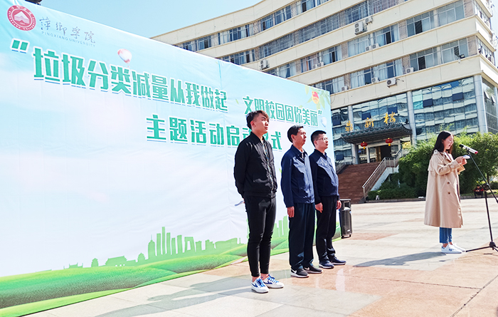 启动仪式上,校学生会主席沈凯博宣读了《“垃圾分类减量从我起,文明校园因你美丽”倡议书》,倡导文明、节约、绿色、低碳的校园生活。接下来,主持人为大家介绍了垃圾分类知识。随后,人文与传媒学院18语教1班班长沈静和信计学院18软工3班团支书钟兰分别作为班长代表和团支书代表发了言,她们号召全校学生从自身做起、从现在做起、从小事做起,积极参与到垃圾分类减量活动中来,用实际行动保护校园环境。活动最后,在刘卫林带领下,全体成员在“垃圾分类减量从我做起,文明校园因你美丽”宣传横幅上签上了自己的名字,表达了自己提高环保意识、维护校园环境的决心。