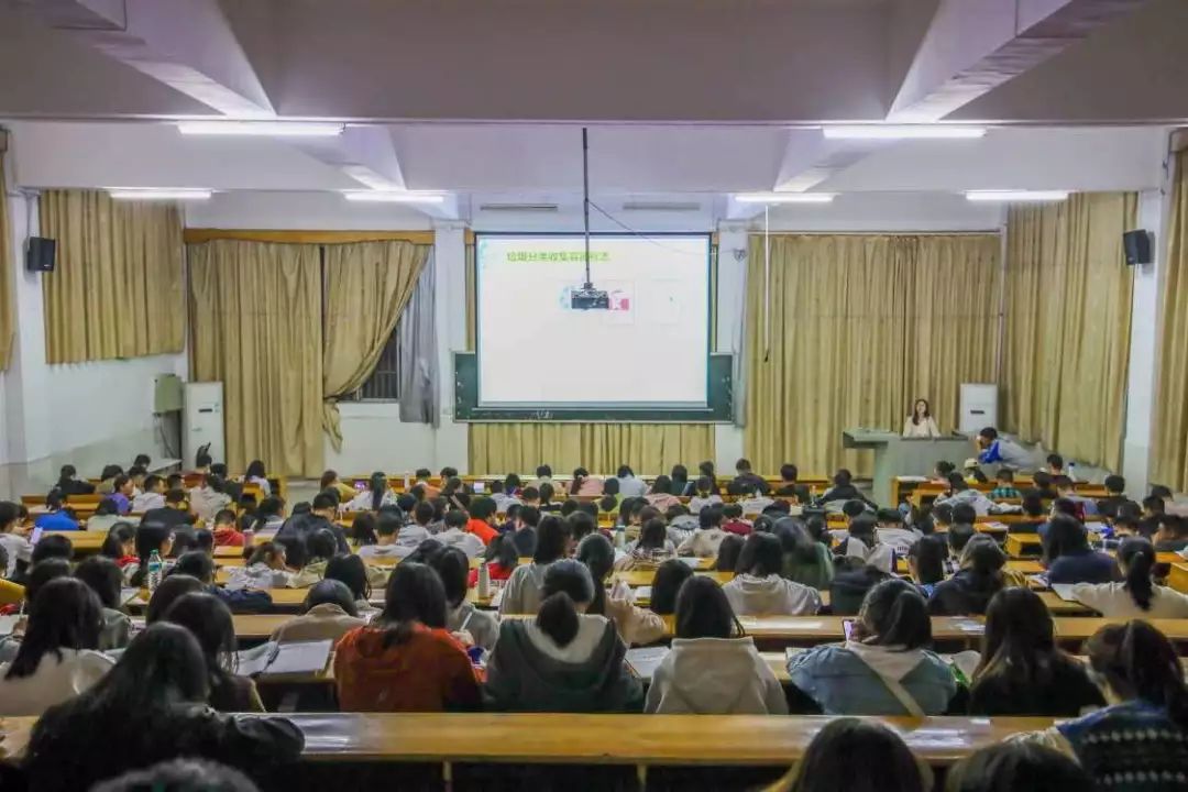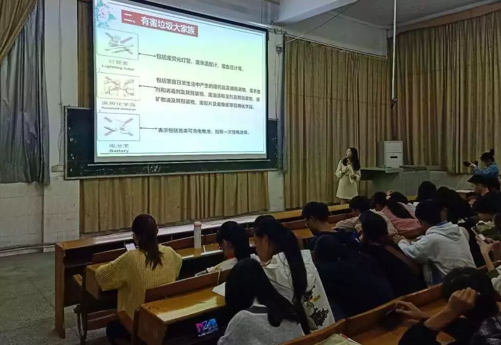 2019年11月5日晚7:20于跬步楼1101教室举行“垃圾分类减量从我做起,文明校园因你美丽”垃圾分类减量宣传员培训大会。校团委、校学生会以及各学院学生代表等300余人参加。由朱婧老师为我们宣讲,共同学习垃圾分类的相关知识,美化校园。