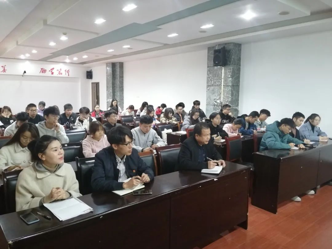 李孟华副书记在讲到《中共中央关于制定国民经济和社会发展第十四个五年规划和二O三五年远景目标的建议》中的“十四五”规划时结合萍乡学院的田径场规划、萍乡市湘东区教育规划等实例,用这些离我们最近的事情让我们更加清楚健全规划制定和落实机制的重大意义。