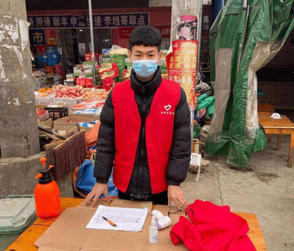 新冠疫情出现反复,形势严峻。萍乡学院体育学院19体教二班班长郭俊峰在得知村里和社区在招募志愿者后立即报名参加,成为一名疫情防控志愿者。