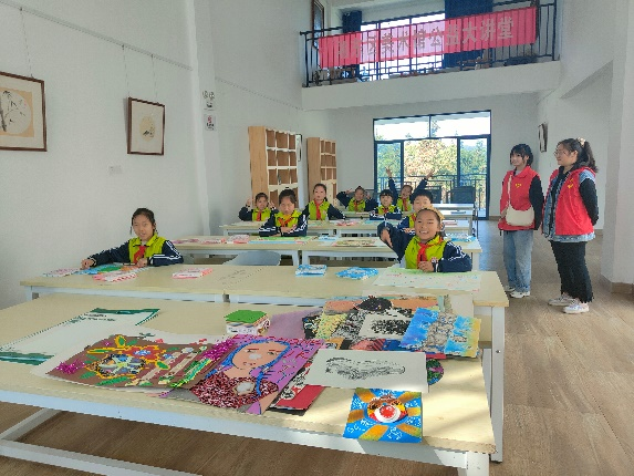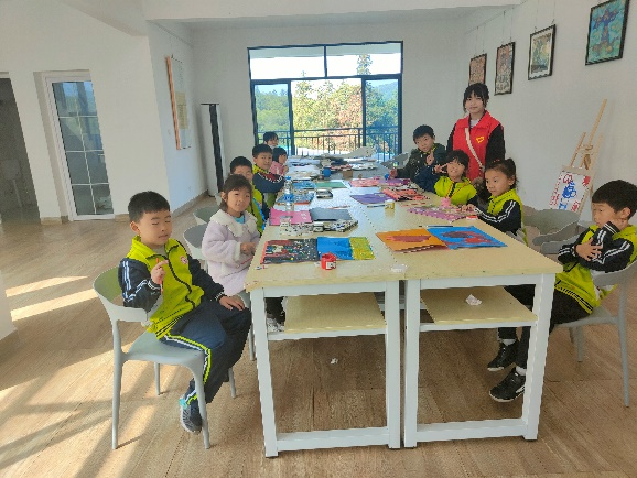 步入0799艺术区,在园区工作者的指导下,艺术学院学生干部去到各个教室对包括书法、水彩绘画、手工作业在内的兴趣班的小朋友们进行知识讲授,相信这次的活动可以在小朋友们的心中埋下艺术的种子,等到合适的机会生根发芽。