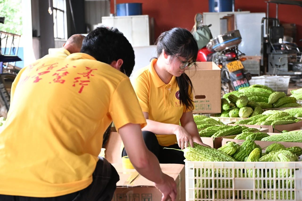 为更深刻体会农业生产,团队成员还走进苦瓜种植大棚,与当地农户一同进行采摘、分拣、装框和搬运工作。炎炎烈日下,成员们亲身体验了农业生产的辛劳,对“粒粒皆辛苦”有了更直观的认识。