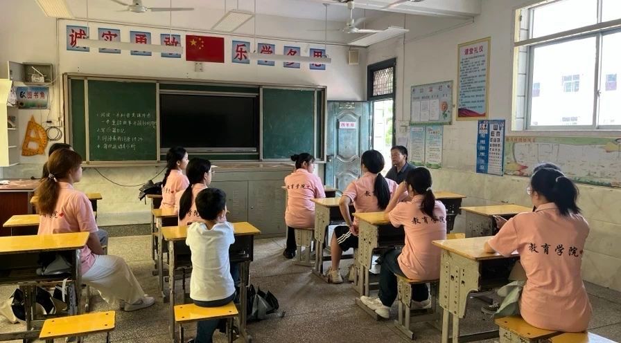 温盘村小学的孩子们,多为一至六年级的留守儿童,长期缺乏父母的日常陪伴。教育学院的大学生们针对孩子们的实际需求和年龄特点,充分发挥专业所长,精心设计了多元化、趣味性的课程体系。教室里,朗诵课上孩子们稚嫩而认真的声音抑扬顿挫,感受着语言的韵律之美;舞蹈课上,欢快的节奏伴随着孩子们活泼跃动的身影;音乐课上,美妙的音符和童真的歌声交织,传递着快乐;手工课上,孩子们专注地折叠、剪贴、描绘,一件件充满想象力的作品在他们手中诞生。这些课程不仅丰富了孩子们的暑期生活,更在潜移默化中提升了他们的艺术素养、动手能力和自信心。