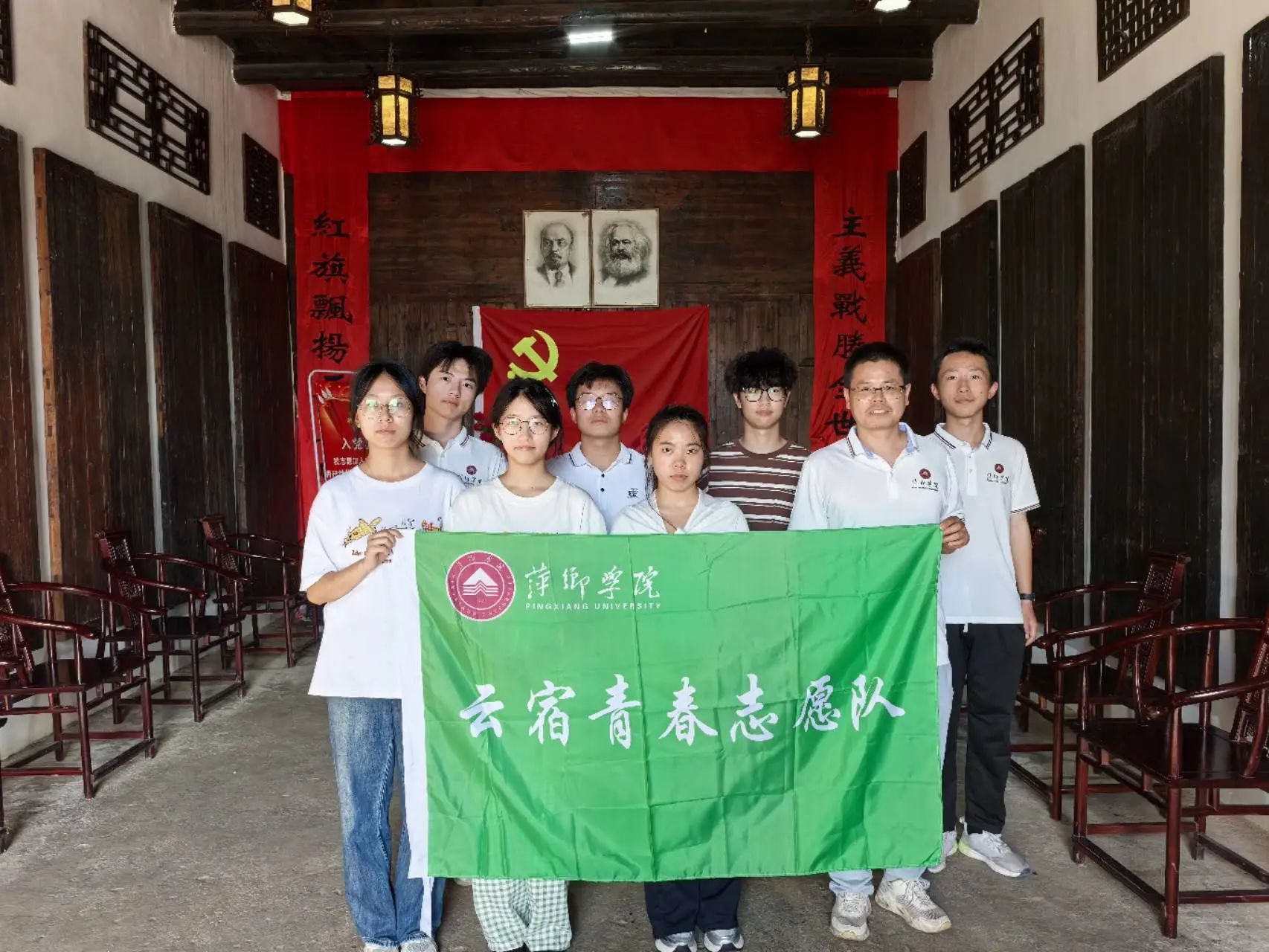 下午,云宿青春志愿队走进湘东(萍乡)苏维埃政府旧址。这座青砖黛瓦的建筑历经岁月冲刷,斑驳的墙垣、飞翘的檐角,似在无声诉说往昔风云,静静矗立成萍乡革命历史的不朽丰碑。