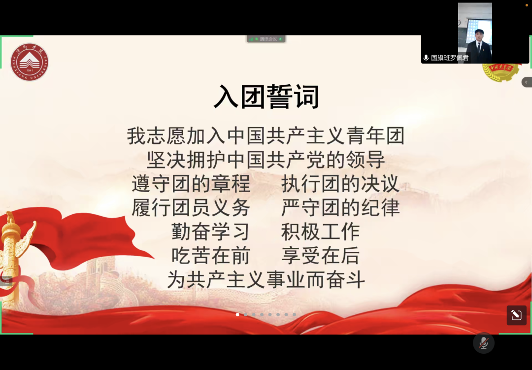 会议伊始,由主持人杨娇和张超宣讲开幕词,讲解换届大会注意事项并介绍到场嘉宾,至此,本次换届大会正式开始。首先,全体起立,奏唱团歌,而后由国旗班班长罗佩君带领大家宣誓,观看各部门暖心小视频后,各部门开始竞聘。他们身着正装,神采飞扬,在屏幕前,他们自信从容,总结过去,展望未来,希望继续在校团委贡献力量,发光发热。