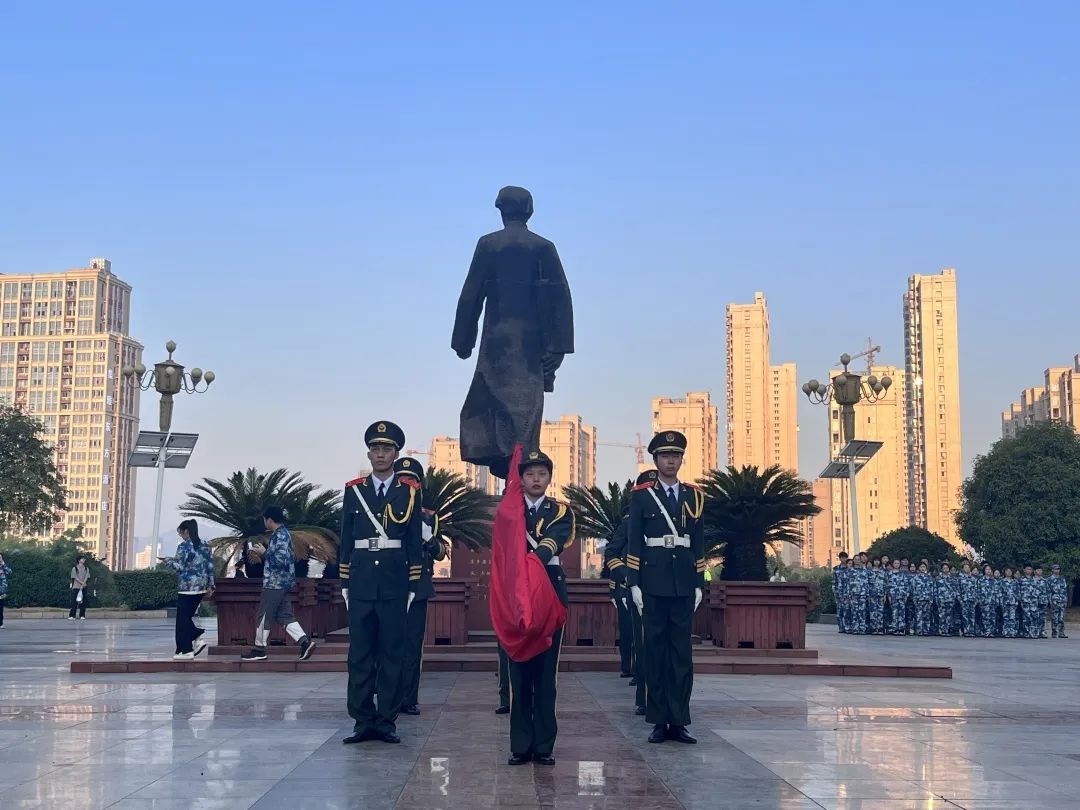 作品简介:挺拔的身姿,坚毅的面庞,肩扛国旗,胸中洋溢着期待与自豪,我愿永远守护着萍院那抹靓丽的红旗。