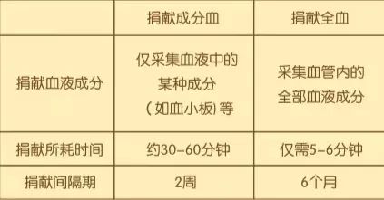 5、捐献成分血与捐献全血有何区别,分别需要间隔多长时间?