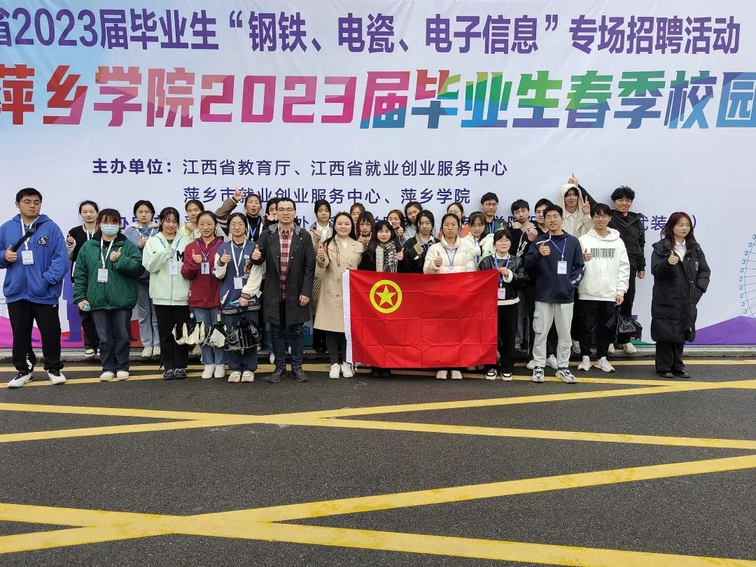 根据教育部和省教育厅统一部署,4月23日,我校在天泉楼前就业创业广场举行江西省2023届毕业生“钢铁、电瓷、电子信息”专场招聘活动暨萍乡学院2023届毕业生春季校园招聘会。本次招聘会由省教育厅、省人社厅、省就业创业服务中心、市人社局、市就业创业服务中心、萍乡学院主办,由萍乡学院招生就业处、团委、保卫处(人民武装部)以及安源区人社局、经开区民生局协办。市教育局局长李奭萍、市就业创业服务中心主任刘忠文等领导应邀指导招聘会,校领导邱晓辉、郭伟、潘运华、吴代赦、陈永国、刘培圣、田常红、陈永秀等出席招聘会。