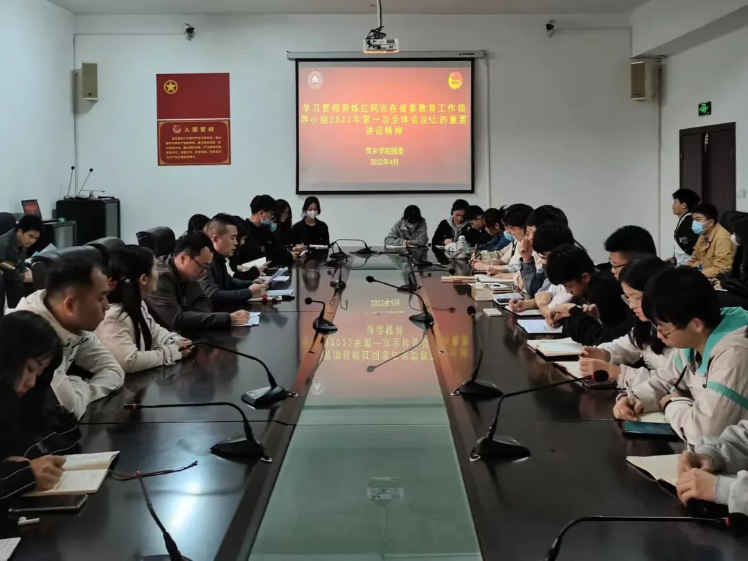 4月15日中午,校团委召开专题学习会,传达学习省委书记易炼红同志在省委教育工作领导小组2022年第一次全体会议上的讲话精神。校团委班子成员和主要学生干部参加学习。