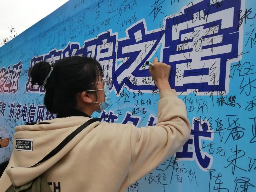由于大学生群体遭受网络诈骗的现象频频发生,为防止大学生遭受网络诈骗,造成无可挽回的财产损失,进一步加大防范电信网络诈骗工作力度,提高师生安全防范意识,坚决遏制电信网络新型违法犯罪高发频发态势,维护学校安全稳定,根据省教育厅有关文件要求,结合学校实际,校团委于4月14日中午12点在文廷式广场面向全校师生开展“防范电信网络诈骗”签名墙活动。