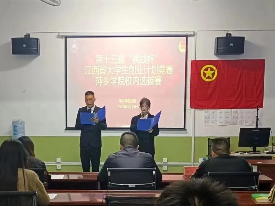 为深入学习贯彻习近平新时代中国特色社会主义思想,引导和激励学生弘扬时代精神,把握时代脉搏,将所学知识与社会发展紧密结合,从而提高创新、创意、创造、创业的意识和能力,为建设社会主义现代化强国,实现中华民族伟大复兴的中国梦贡献青春力量。2022年4月13日,第十三届“挑战杯”江西省大学生创业计划竞赛萍乡学院校内选拔赛于多维楼307、308圆满落下帷幕。本次比赛由校团委书记江惺俊、创新创业学院院长谢伟萍、萍乡卫生职业学院团委负责人吴司琪、校团委副书记熊云杰、吴春晓老师和刘仁柱老师担任评委。
