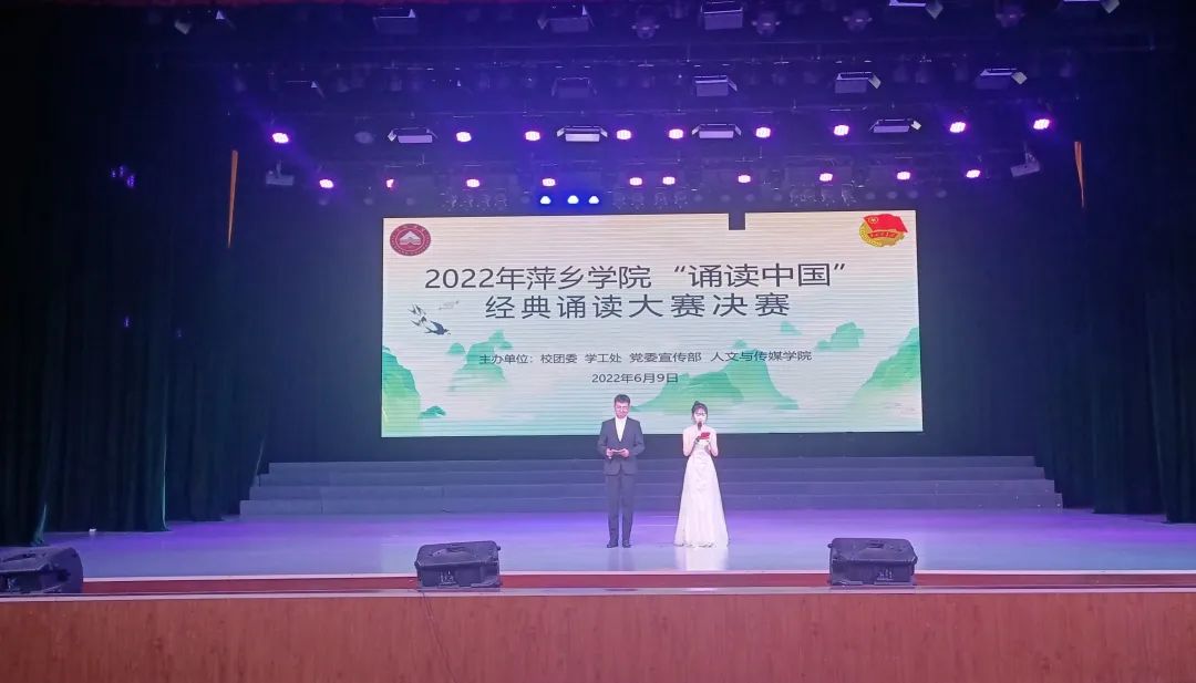 经典诗文是文化宝库中璀璨的明珠,是人类伟大的精神财富。为进一步倡导阅读经典,营造书香校园,6月9日,校团委、学工处、党委宣传部、人文与传媒学院在音乐厅共同举办“诵读中华经典,经典筑梦未来”2022年萍乡学院“诵读中国”经典诵读大赛决赛。人文与传媒学院教师周满娇、 教育局师资料陈星校友、萍乡学院学工处副处长陈敢、党委宣传部宣传科科长陈国俊、团委艺术团负责人李琼担任评委。党委委员、党委宣传部部长陈永国、学工处处长肖国正、校团委书记江惺俊、人文与传媒学院院长易志文、体育学院张里校友以及材化学院冉茂乾校友出席此次活动。