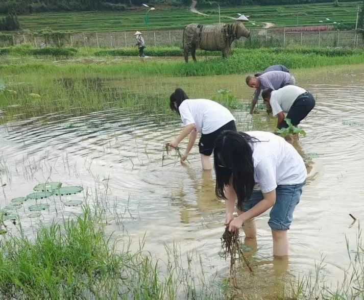 为帮助美化稻田公园的环境,同学们拿起劳动工具在园区内割草、拔草、喂鱼等,在这个过程中,有汗水、有欢乐,同学们在辛苦劳动的同时互相鼓励,在劳动中寻找乐趣。此外,同学们还来到吉内得富硒大米生产田地开展除草助农活动,为农民们分担农活,亲身体验农民们的辛苦。