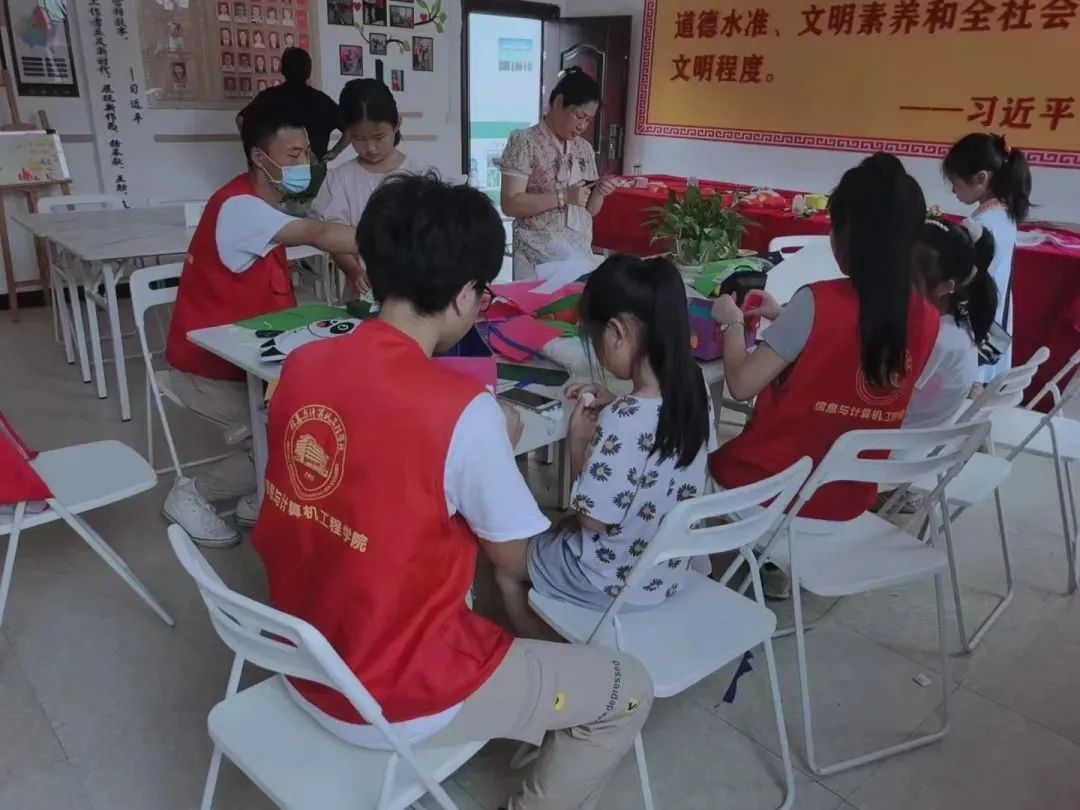 2022年7月2日,信息与计算机工程学院“玉玲”志愿服务团暑期“三下乡”社会实践团队成员前往腊市镇文化站童心港湾,与“童伴妈妈”一起陪伴留守儿童,传递温暖与关爱。