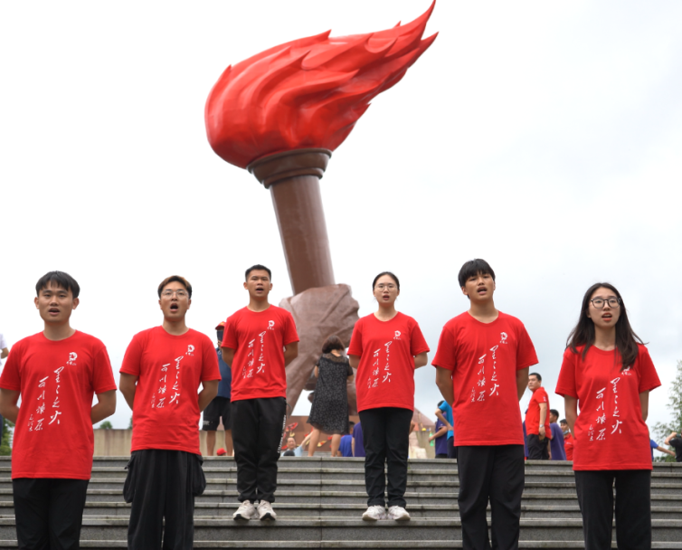 随后,我们来到井冈山火炬广场,火炬直插云霄象征着中国共产党在革命年代点燃的火种已形成燎原之势。在火炬广场下,我们自发地齐唱红歌《映山红》倾情告白祖国,致敬中国共产党,以实际行动迎接党的二十顺利召开。