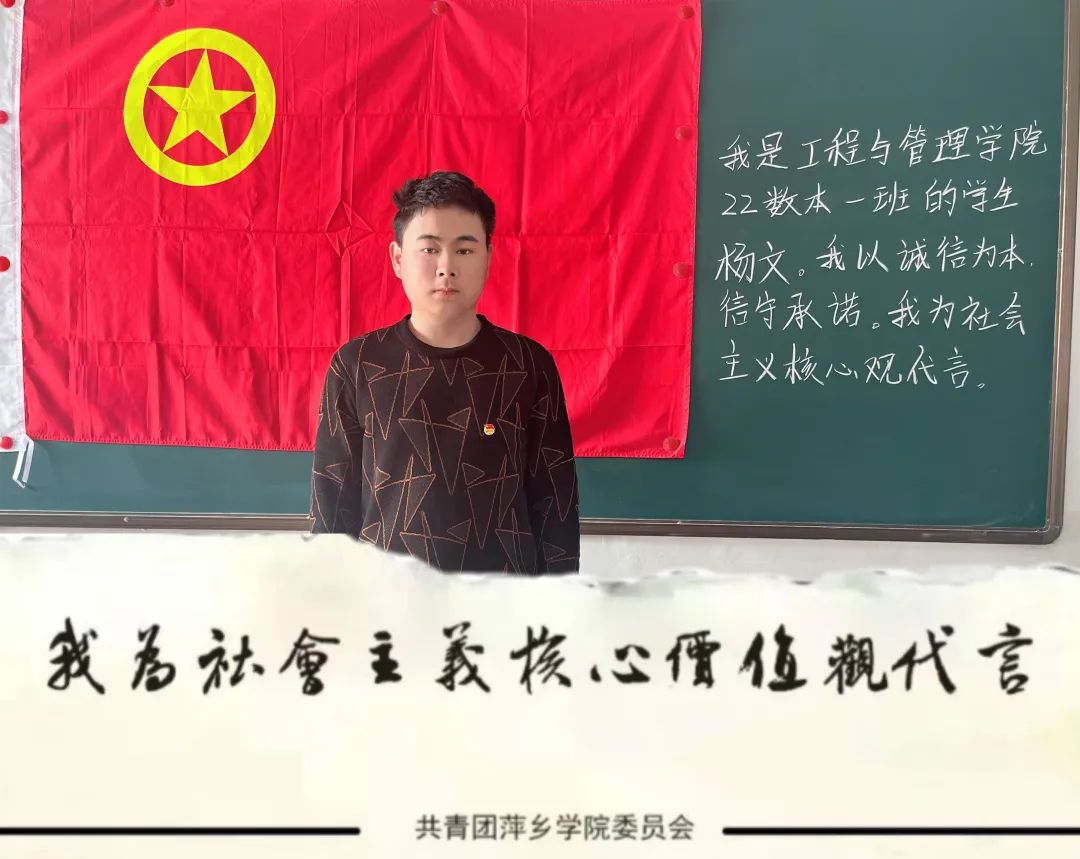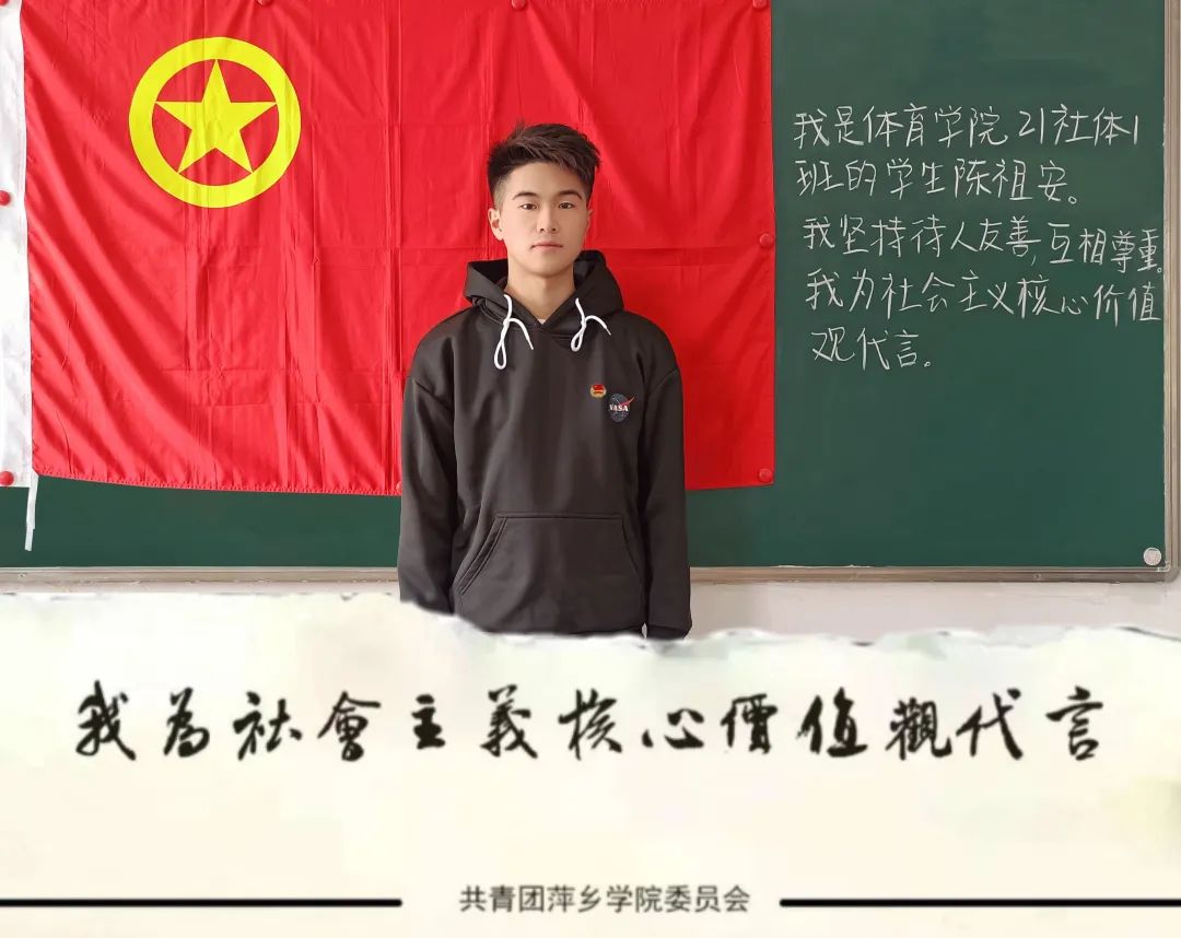 践行社会主义核心价值观,是当代中国青年的价值追求。在萍院,有这样一群人以实际行动积极践行社会主义核心价值观,他们为社会主义核心价值观代言,号召更多的团员青年培育和践行社会主义核心价值观!本周特推出第247批为社会主义核心价值观代言的各学院学生。