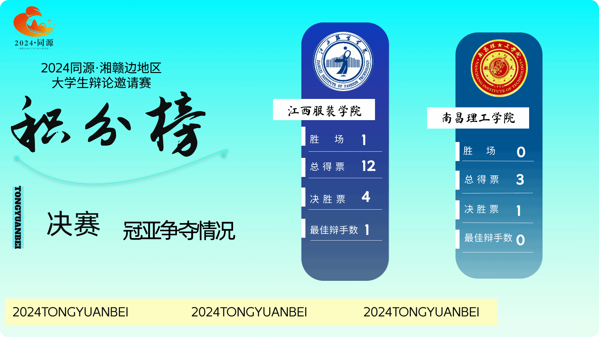 截至2024年12月15日,2024同源·湘赣边地区大学生辩论邀请赛总决赛已圆满落下帷幕,最终江西服装学院辩论队以五胜零负的成绩,荣获赛事冠军。