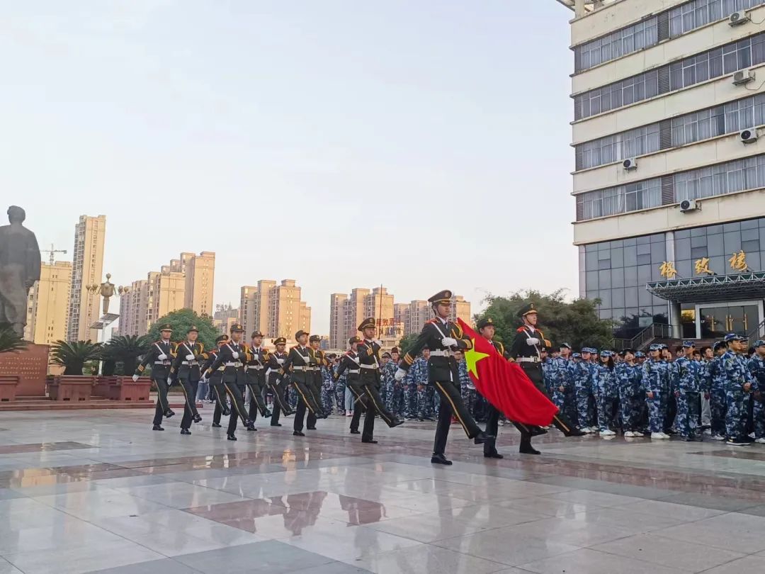 升旗仪式伴着初升的太阳如约而至,国旗班的同学们踩着坚硬的步伐,带着浩荡的气势,拉开了升旗仪式的序幕。机械电子工程学院和体育学院的学生们也如约来到了升旗仪式。