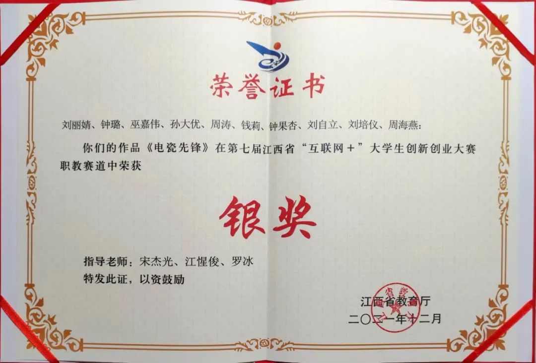 2021年12月在第七届江西省“互联网+”大学生创新创业大赛荣获“银奖”