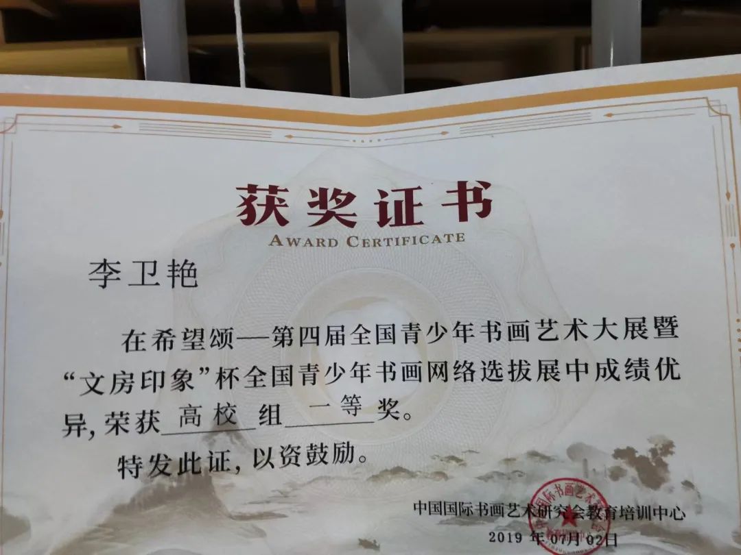 希望颂-第四届全国青少年书画艺术大展暨“文房印象”杯荣获高校组一等奖
