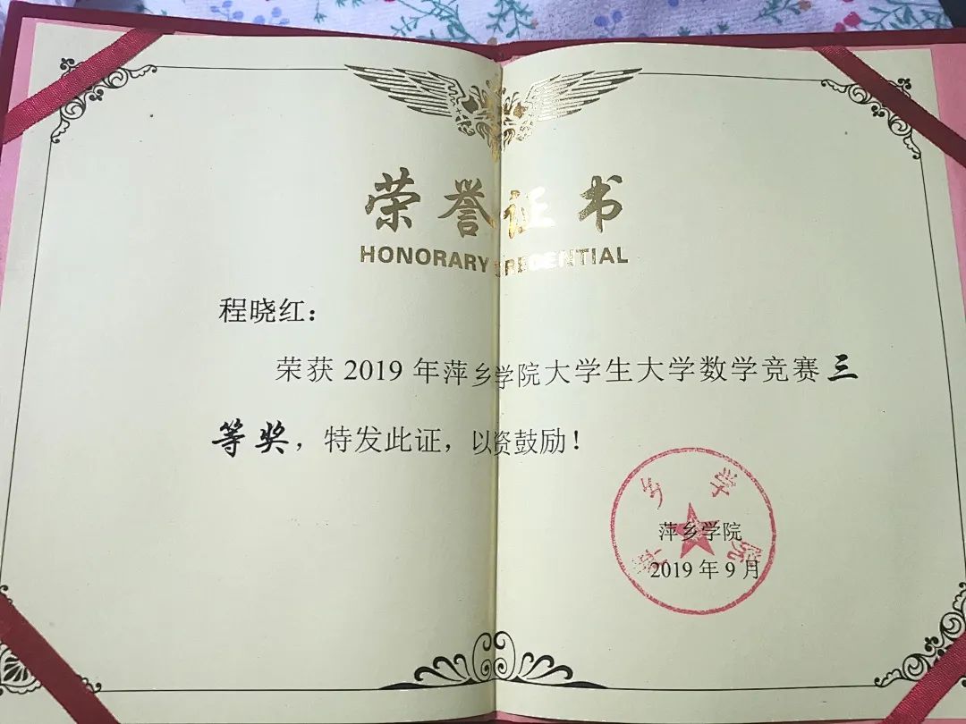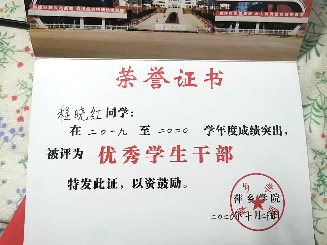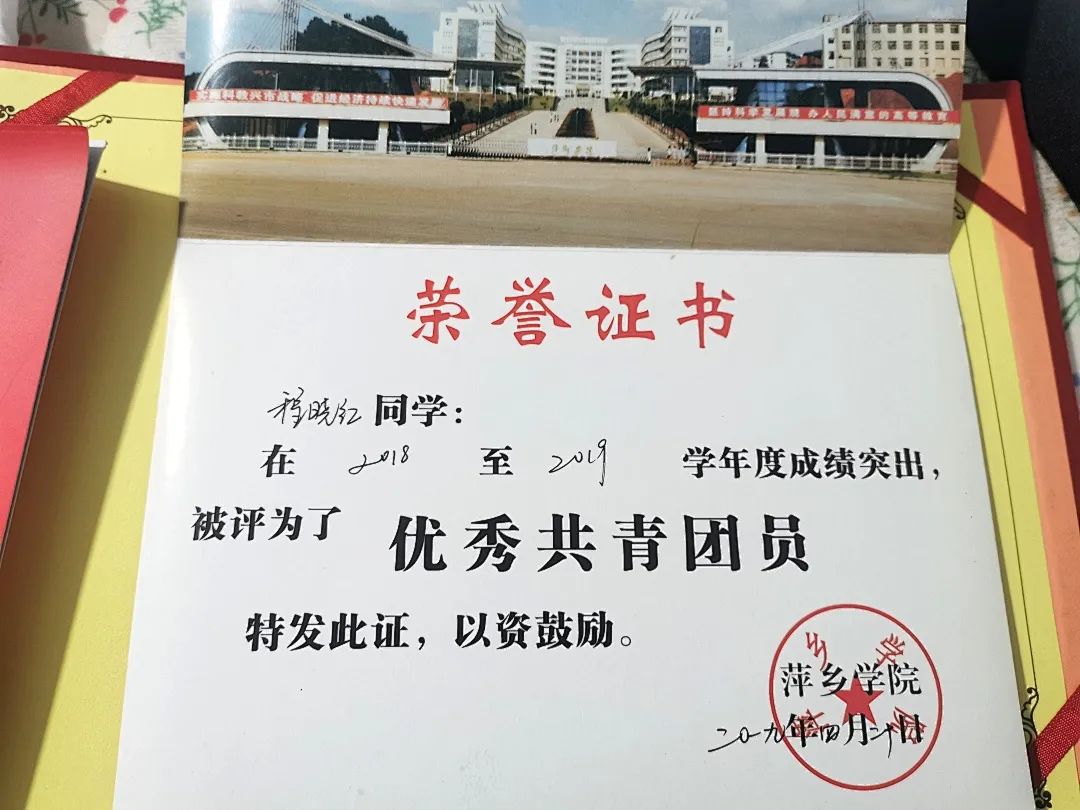 她在校期间曾获优秀共青团员、优秀学生干部、优秀共青团干部、优秀毕业生、萍乡学院大学生大学数学竞赛三等奖、普通话二级甲等、优秀教学信息员、晨读积极分子、星级干事、大学英语四级、大学英语六级等奖项。